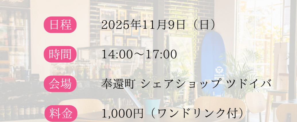 2025/11/09(日)2:00 PM - 5:00 PM