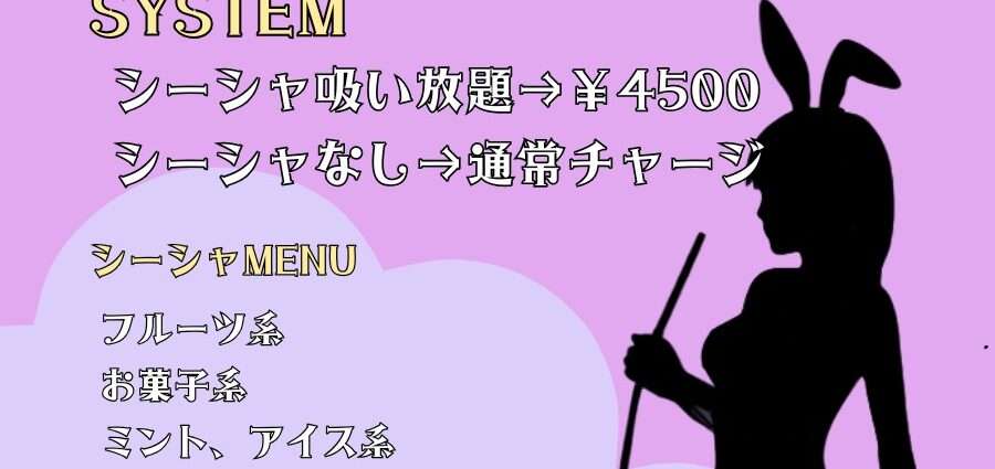 シーシャなしの方は¥3000です。