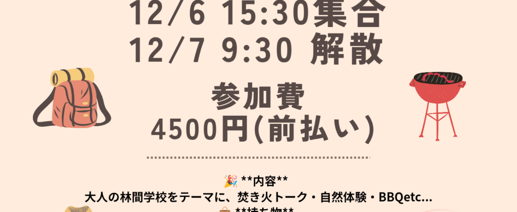 2025年12月6日(土)15:30集合 ~ 12月7日(日)9:30解散